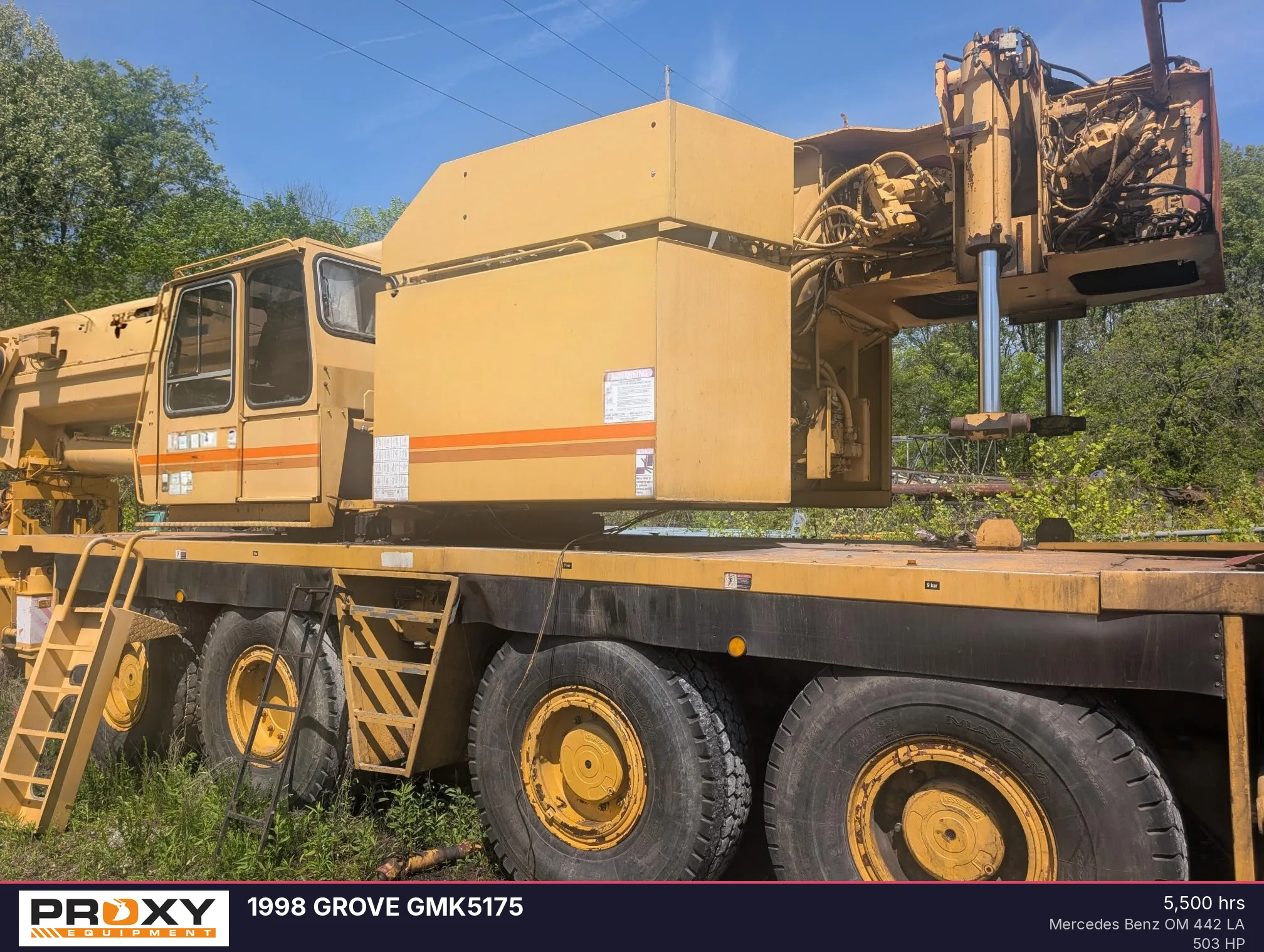 The 1998 Grove GMK5175 represents a robust solution for contractors requiring heavy-lift versatility in a mobile package. This 175-ton all-terrain crane combines a 161-foot boom with a 125-foot jib to provide significant reach for complex job sites. Available now on Proxy Equipment for $69,900, this unit offers a compelling value proposition for fleet managers looking to bolster their heavy lifting capabilities without the capital expenditure of a new machine.