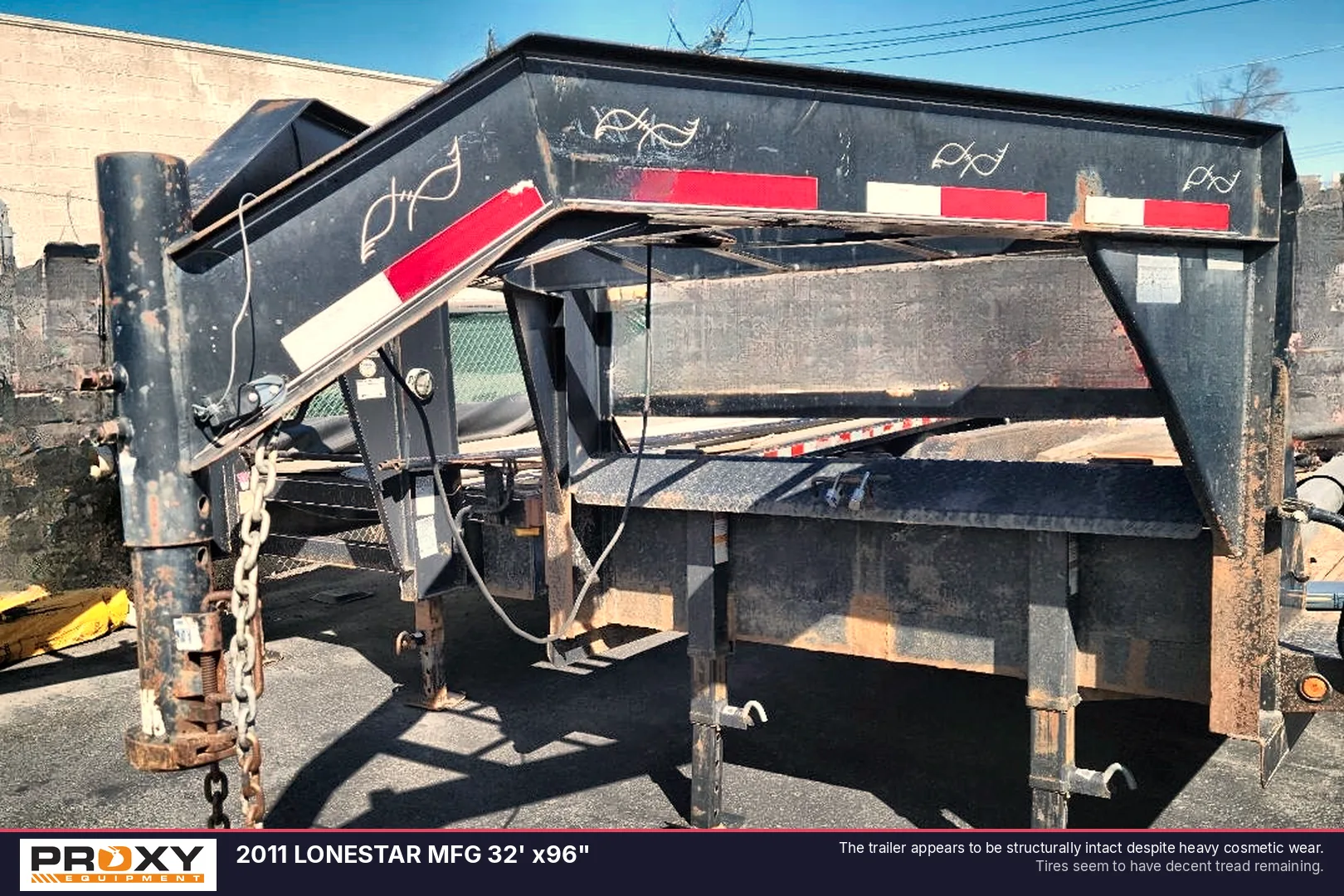 - The trailer appears to be structurally intact despite heavy cosmetic wear.