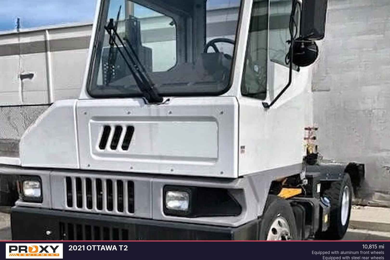 This 2021 Ottawa T2 4x2 yard spotter is powered by a 200 HP Cummins B6.7L engine paired with a 6-speed Allison transmission. Featuring a 7.17 gear ratio, this unit is well-suited for high-torque terminal operations and is available with low hours and low mileage.