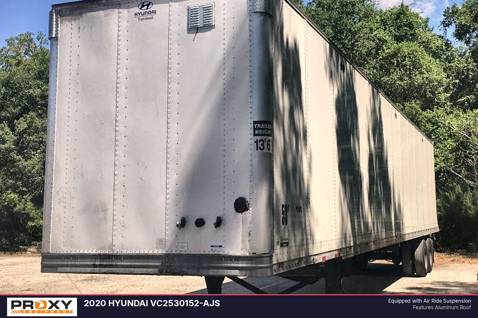 This 2020 Hyundai Translead 53' x 102" dry van is built for heavy-duty freight transport with a 68,000 lb. GVWR and a durable aluminum roof. Equipped with a sliding axle and air ride suspension, this unit offers flexible load distribution and a smooth ride for sensitive cargo. It features a reliable wood floor and swing doors, enhanced by an integrated PSI automatic tire inflation system to minimize maintenance downtime.